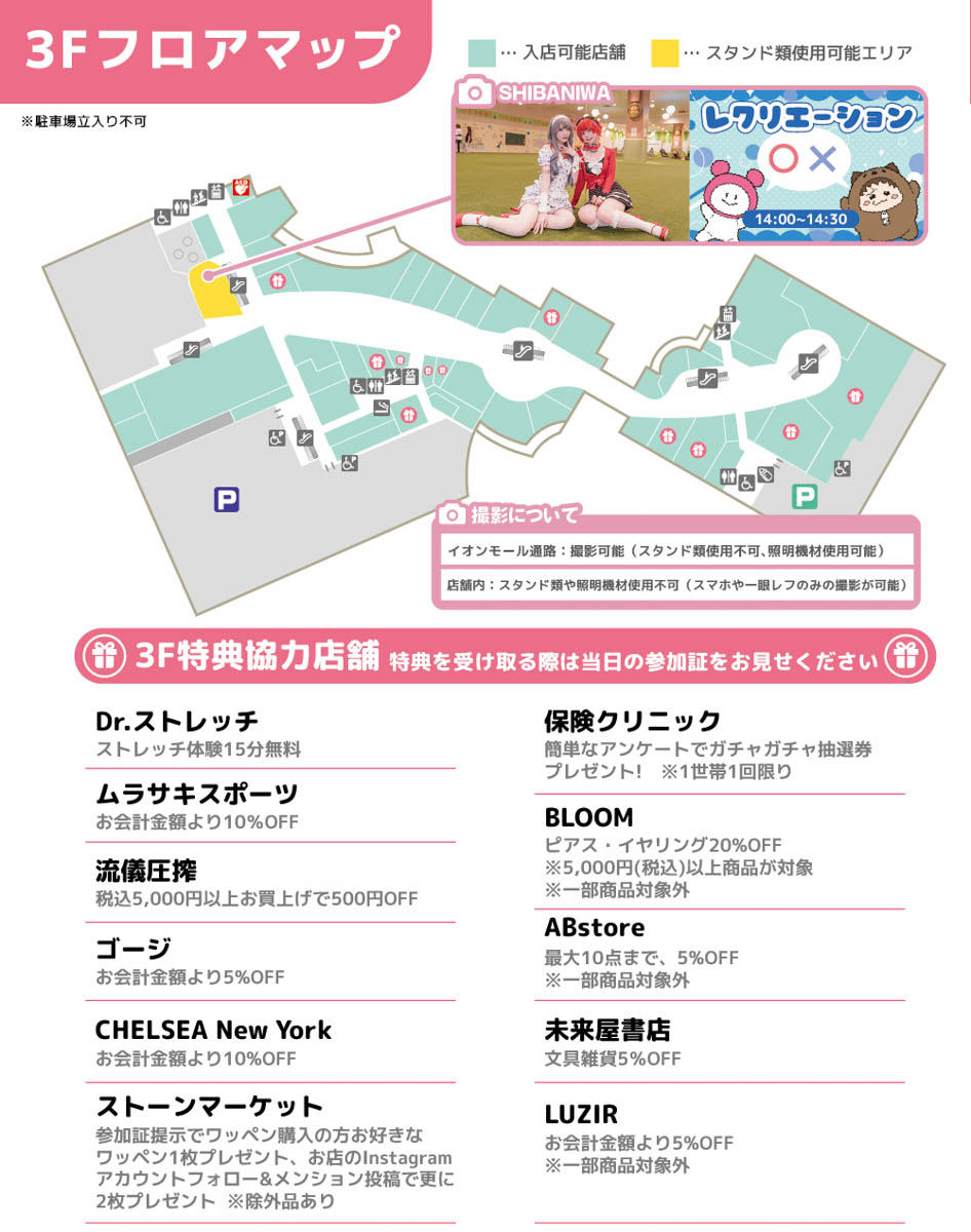 指定の時間を超えての滞在はできませんので、あらかじめご了承ください。 - コスプレのまま来場することはできません。