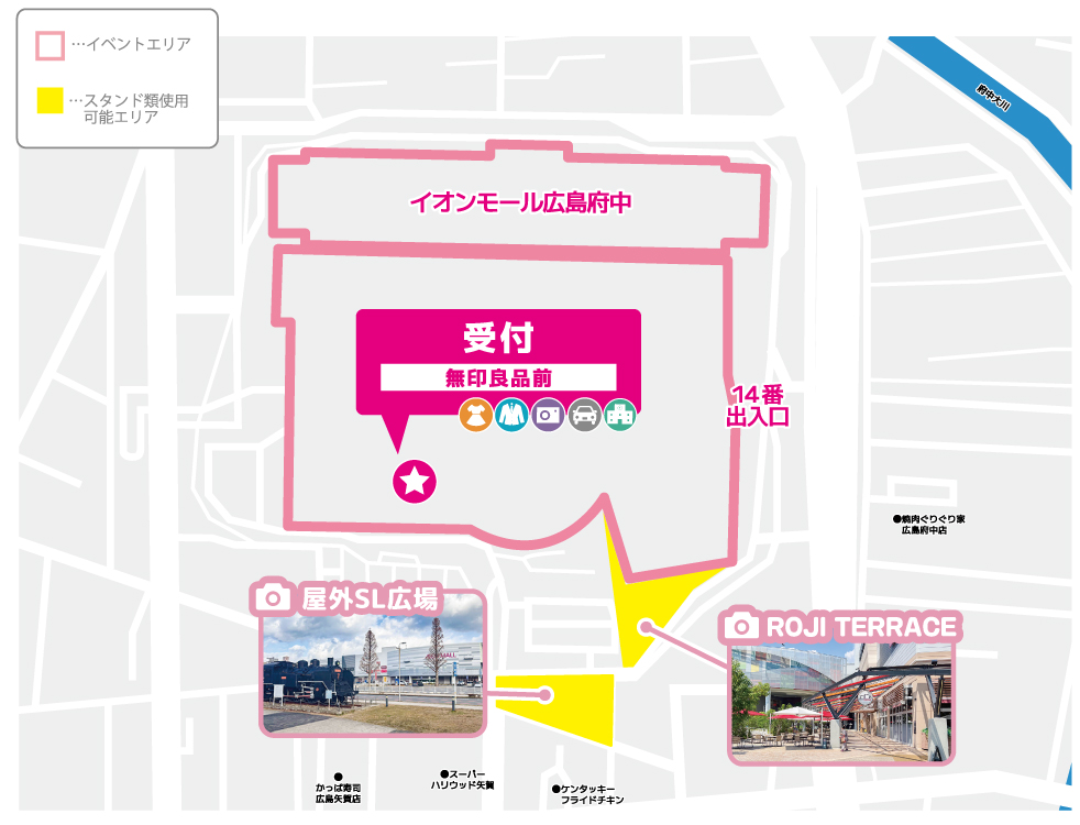 - 駐車場はイオンモール広島府中の専用駐車場をご使用ください。