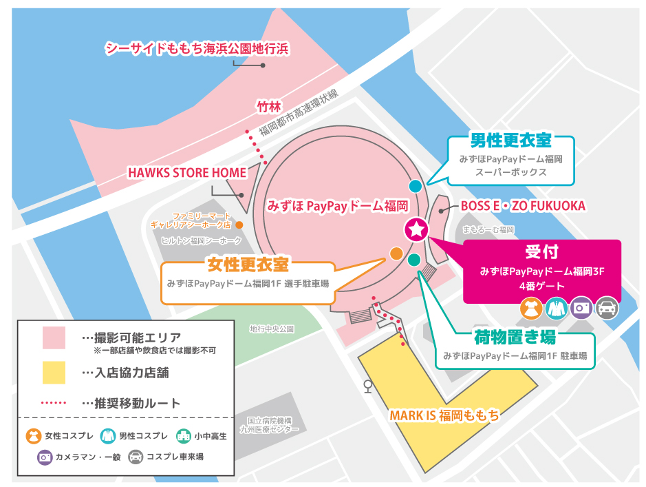 - 駐車場はみずほPayPayドーム福岡の専用駐車場をご使用ください。