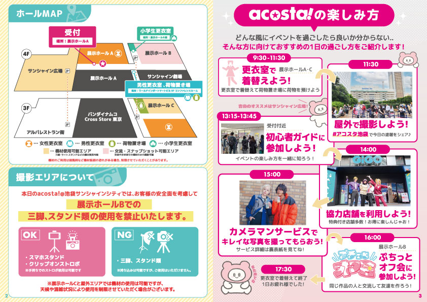 ホールMAP、撮影エリアについて、acosta!の楽しみ方
