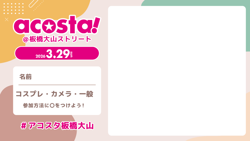 ブログでロケーションを詳しく見る@acosta_jp 2025年3月初開催!板橋大山ストリート撮影スポット紹介! 動画作成:星弥(@seiya549ha) まひる(@mahiru715) #アコスタ #acosta #アコスタ板橋大山 #コスプレ #コスプレイヤー #cosplay #coser #コスプレイベント #紹介 #板橋 ♬ オリジナル楽曲 – コスプレイベントacosta!