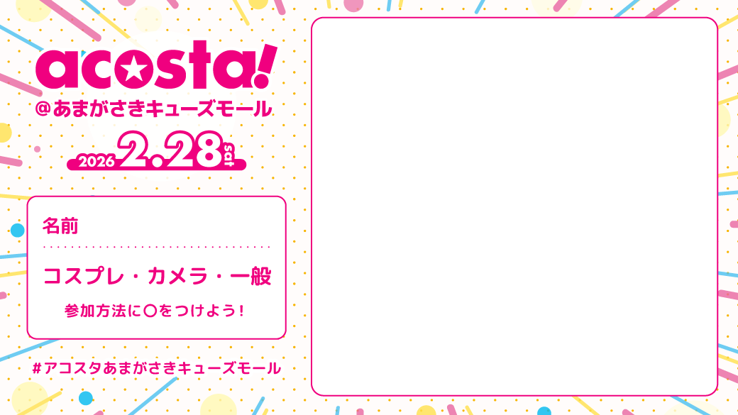 兵庫県尼崎市のあまがさきキューズモールで 初のacosta!イベント開催決定!